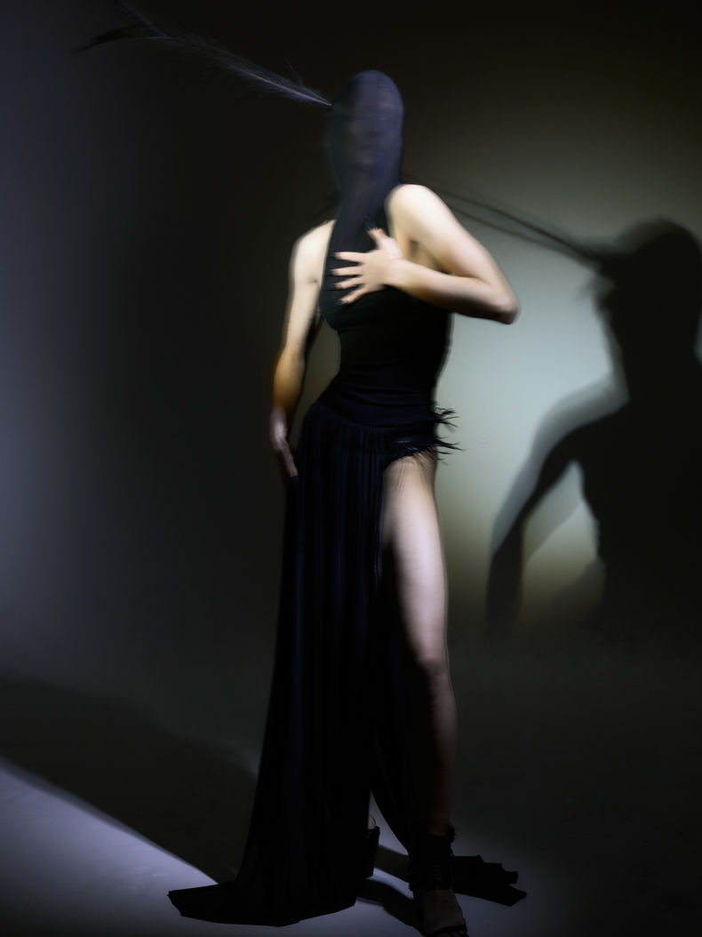 The collection’s editorial is shot with an incredible team of intentful collaboration. Lensed by James Bee, whose work spans the likes of ELLE China, PAPER, V Magazine, Vogue China, Vogue US, and with styling consultation from Joe Van Overbeek, who has been a foundational figure in the journeys of prominent emerging designers such as Elena Velez and Jane Wade. The chosen photographic process deliberately mirrors the collection’s making philosophy and process, captured through a process of long exposure and light painting that condenses prolonged moments into a singular image, its imperfections, motions and passage of time preserved in their irreplicable purity.